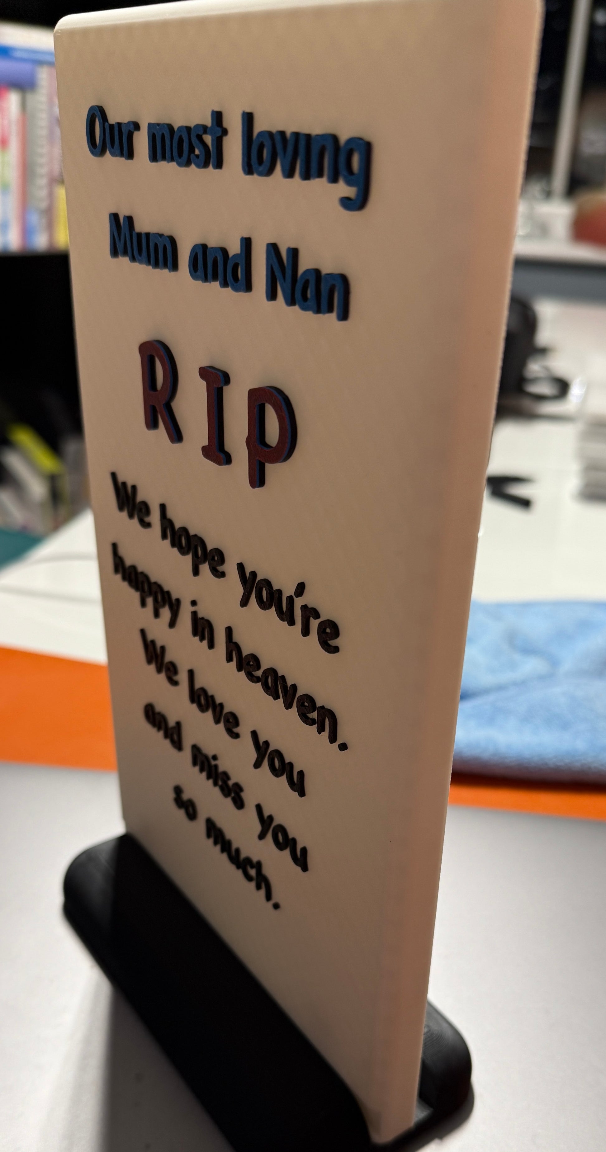 A lightweight 3d printed plaque that can have your personalised name, message and colour selection.